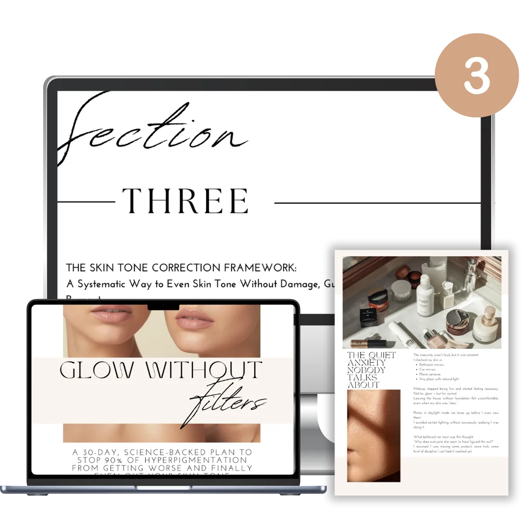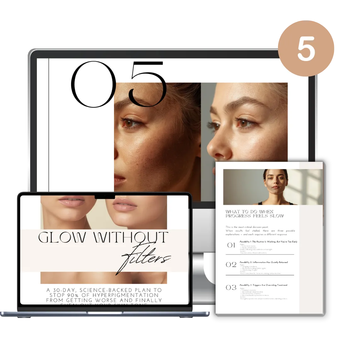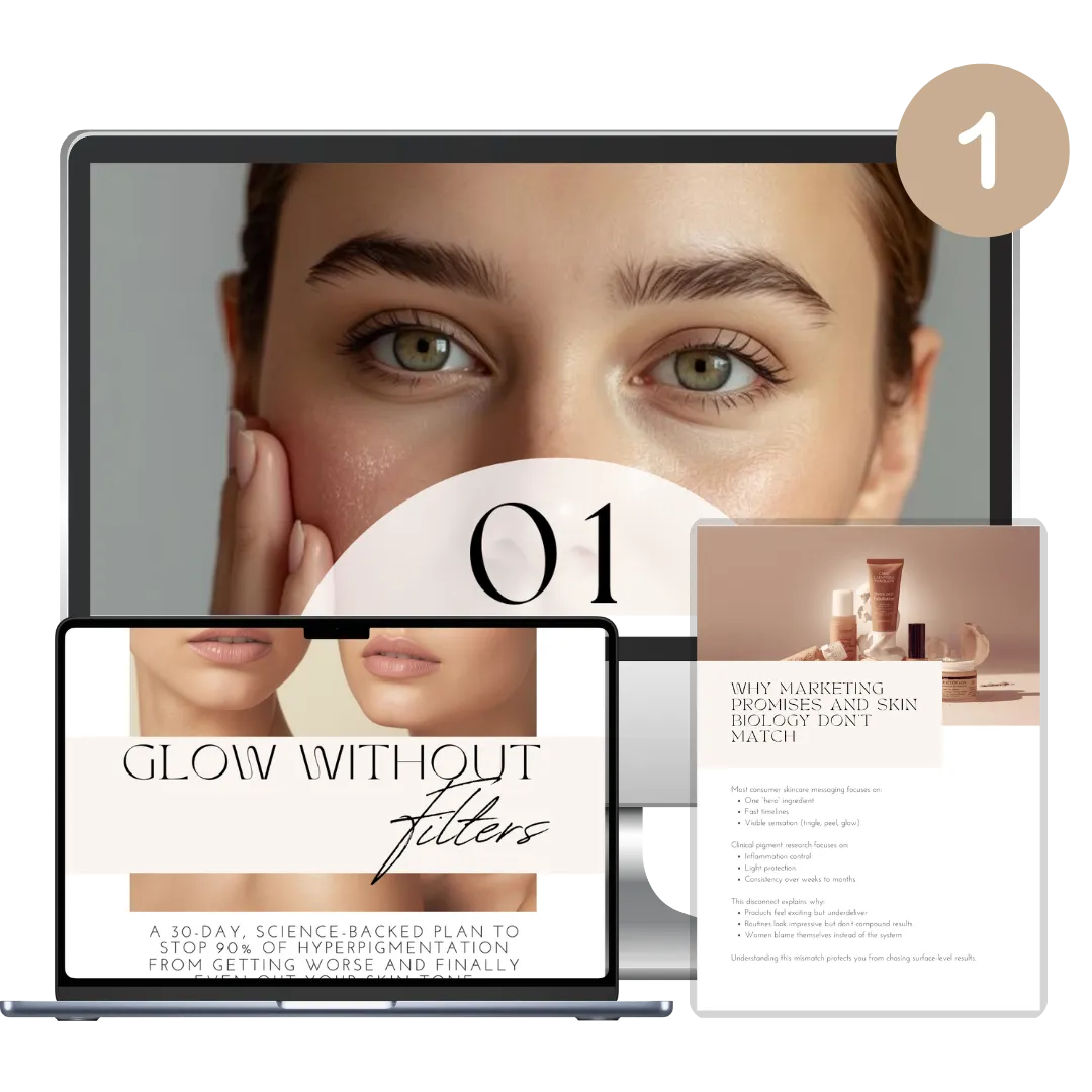 Instead of guessing, Glow Without Filters teaches you how pigmentation actually works — so your effort compounds instead of backfires.